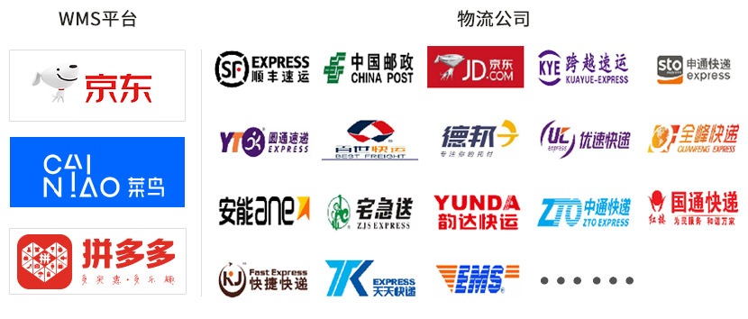 支持京东无界运单、淘宝菜鸟面单、拼多多云打印、顺丰快递、京东快递等
